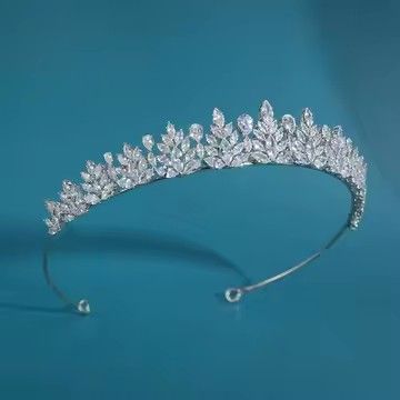 A stunning, lightweight bridal tiara designed with brilliant CZ (Cubic Zirconia) crystals arranged in an elegant leaf motif. This shimmering crown adds the perfect touch of royalty and sophistication to any bridal look.