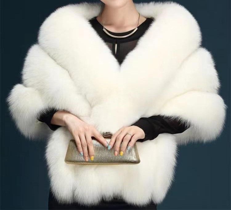 Extra Soft Faux Fur Shawl with Hidden Pockets – Luxury Bridal Wrap