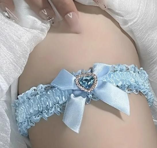 đź’™ Bridal Garter With Rhinestone Heart – “Something Blue” Elegance